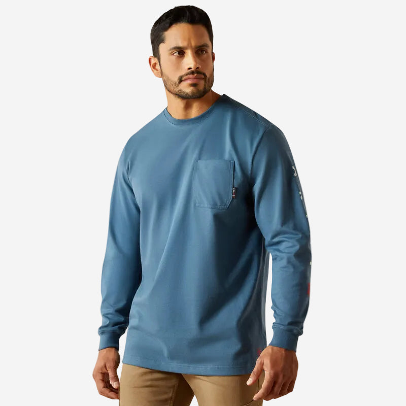 This FR cotton T-shirt delivers dependable protection with everyday comfort and durability you can count on. Designed for demanding work environments, it features a soft yet tough construction with a familiar fit that moves with you. Finished with bold graphics and Ariat branding, it’s workwear that reflects grit, pride, and performance.