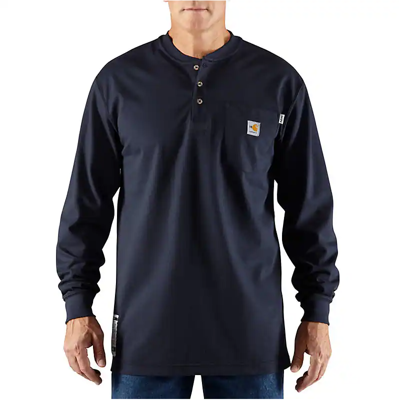 Men’s FR Force Cotton Long Sleeve Henley – Navy