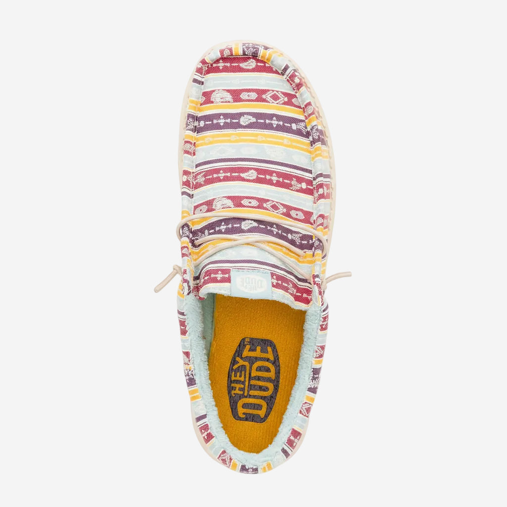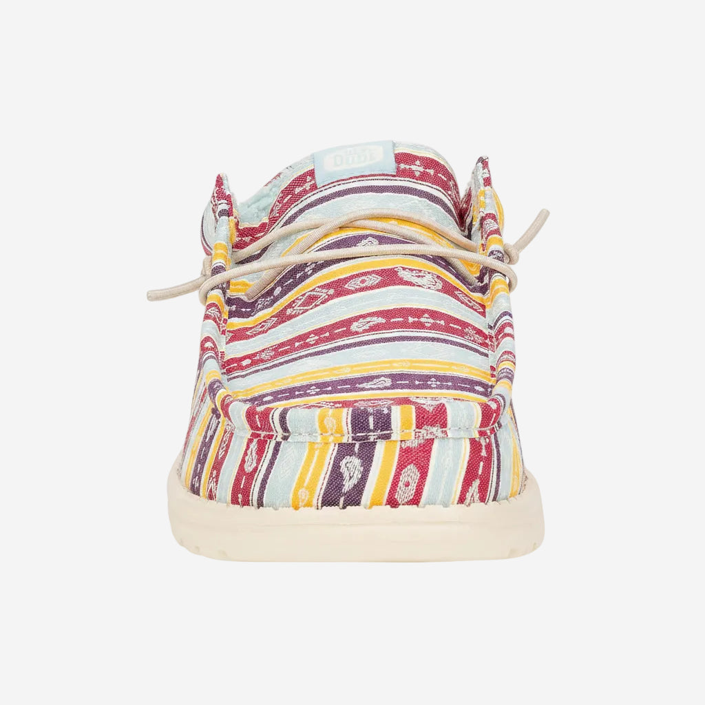 The Hey Dude Wally Funk Surf Blanket delivers exceptional comfort and standout style with a breathable textile upper and vibrant surf-inspired design. Built with elastic laces and an easy slip-on system, it provides effortless wear and a secure fit. The removable foam insole and lightweight flexible outsole ensure all-day cushioning and support.