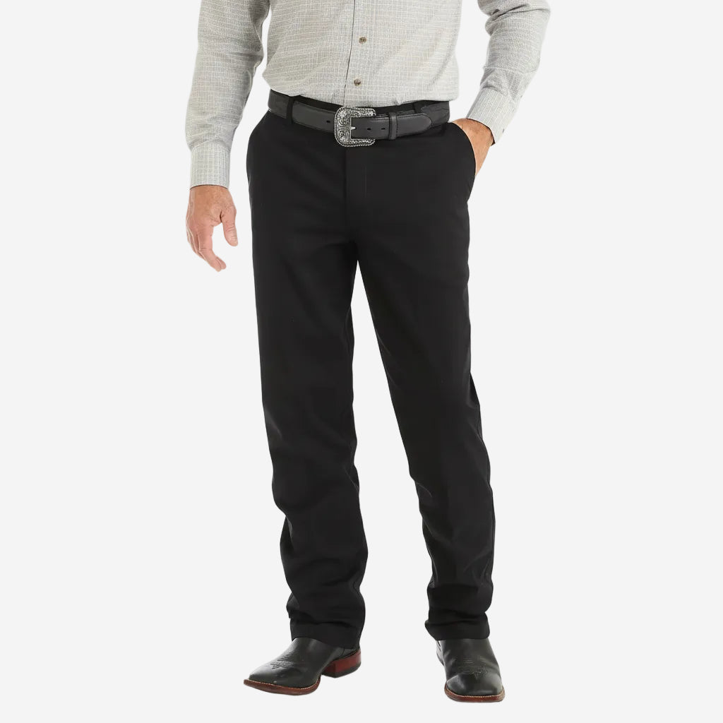 The Wrangler Western Casuals Flat Front Pants are designed to keep you looking polished while staying comfortable all day. Built with a hidden comfort waistband and a relaxed fit, these pants move with you without losing their tailored appearance. Wrinkle-resistant fabric allows for true wash-and-wear convenience, while clean flat-front styling and double welt back pockets deliver a refined look that works for the office, travel, or everyday wear.