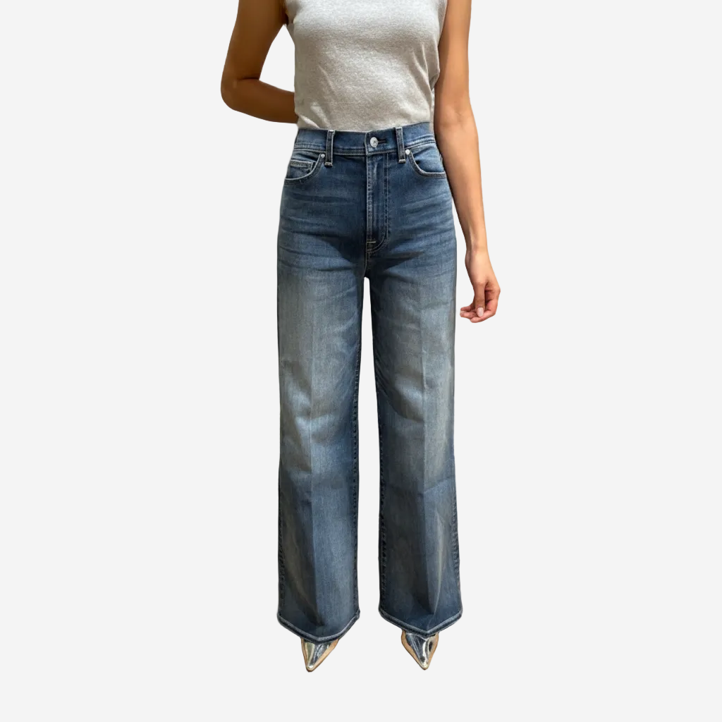 Ultra high-rise flare denim with bold, elevated style