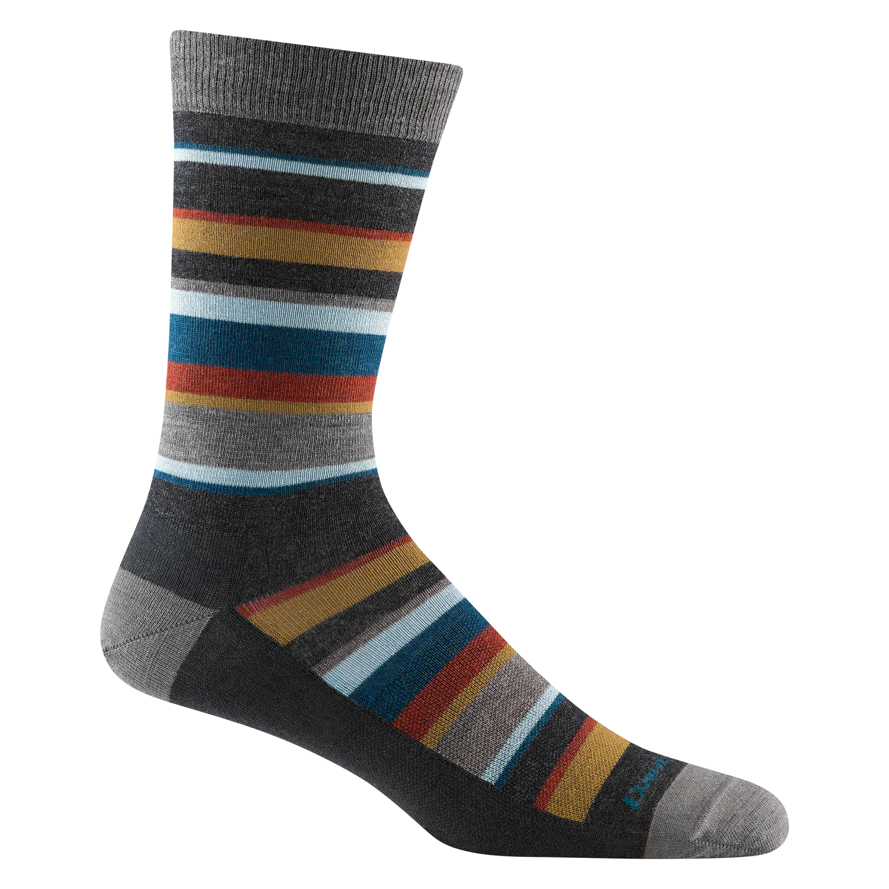 The Darn Tough Druid crew sock delivers a smooth, breathable fit with colorful striped style and durable performance for daily wear.