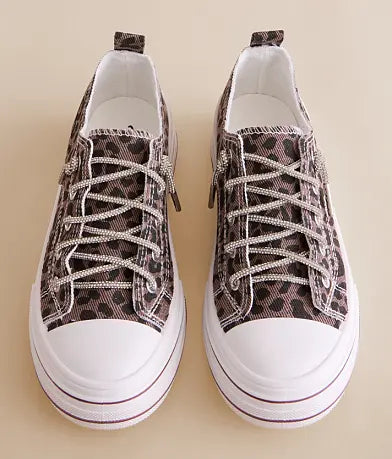 Shine bright with the Very G Aman Animal Print Rhinestone Sneaker! These stylish canvas sneakers feature a platform sole and subtle rhinestone accents for a touch of everyday glam.