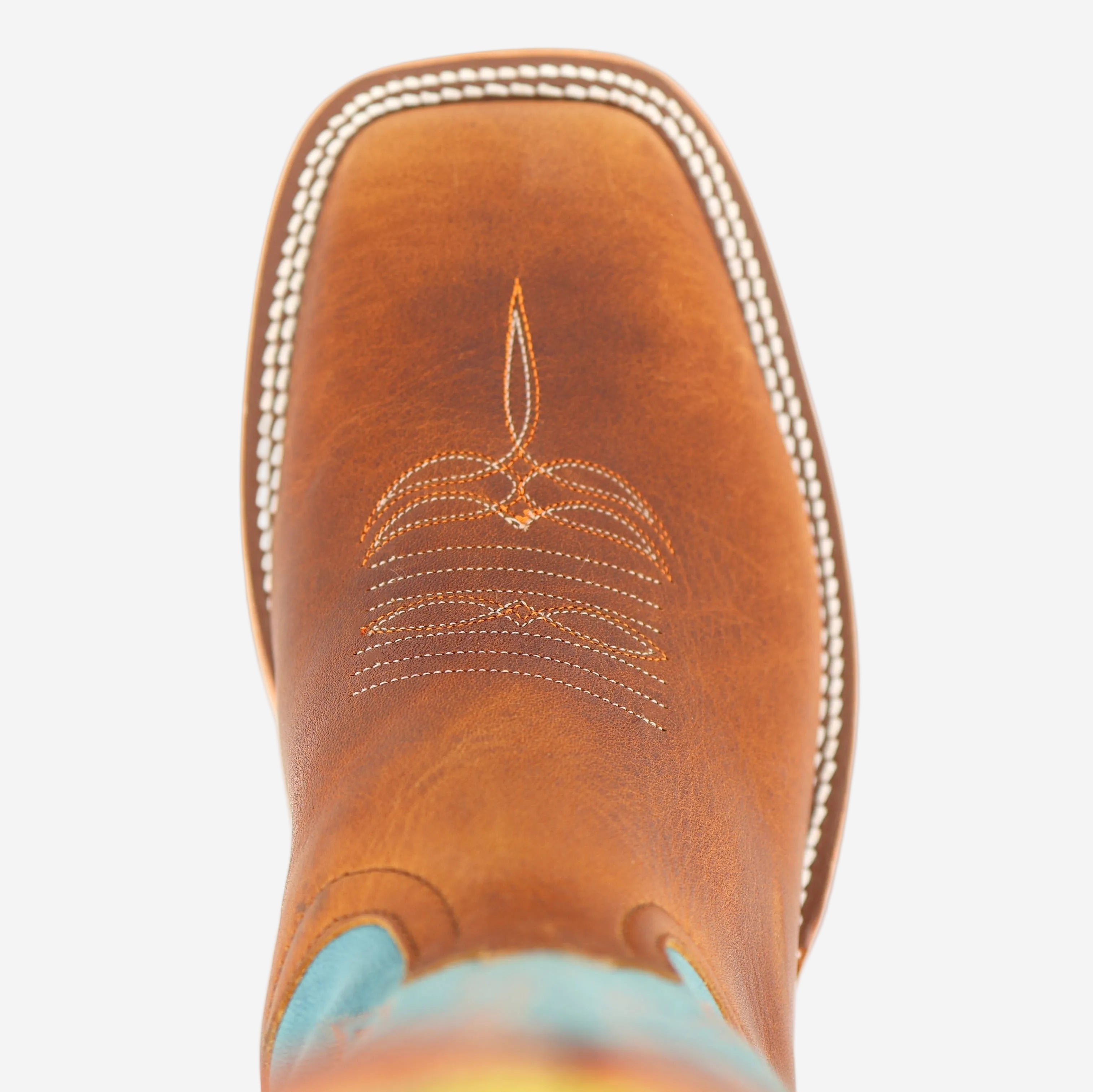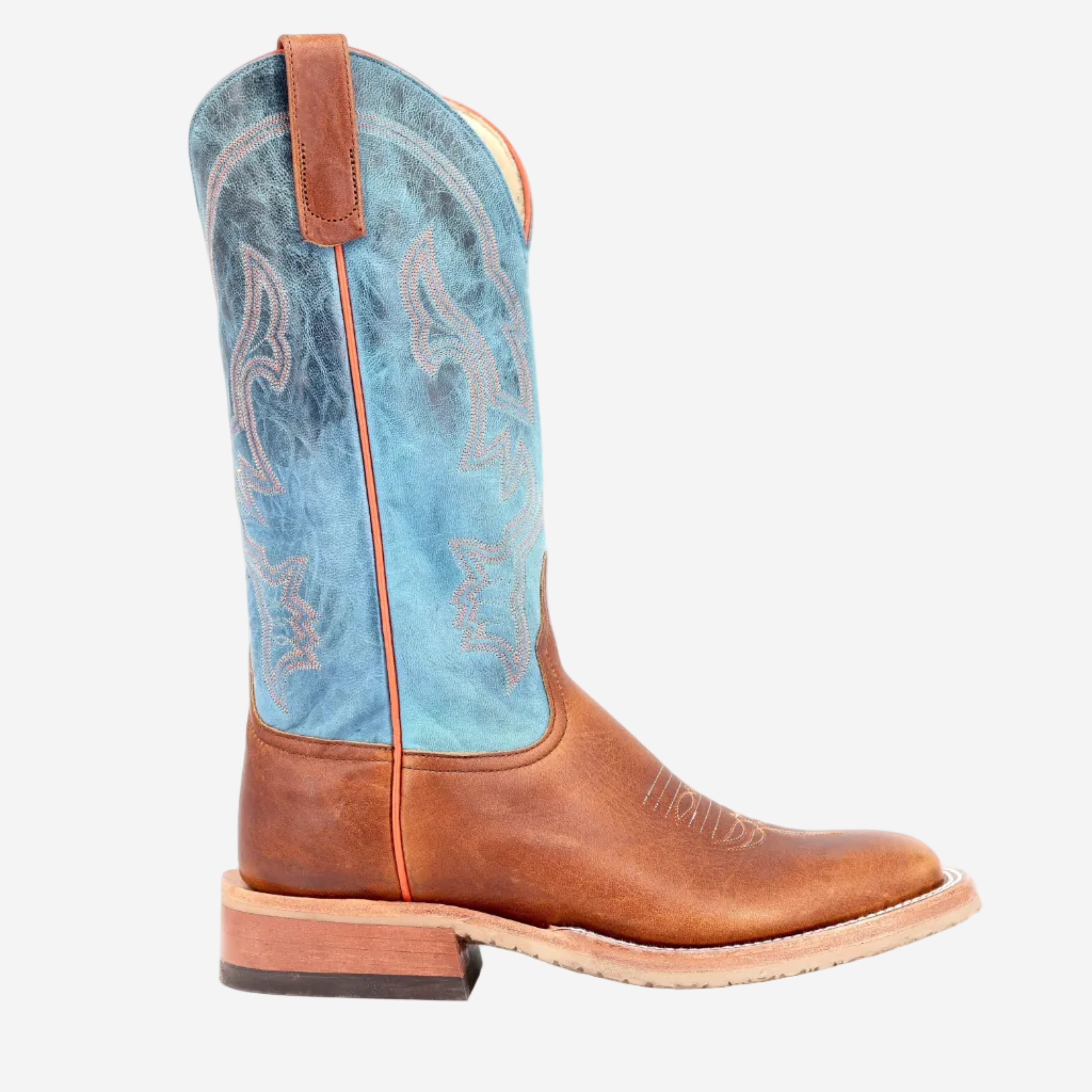This Anderson Bean Western boot pairs rich briar leather with refined Danube Mad Dog kidskin for a bold yet timeless look. Crafted from aniline-tanned steer hide with a crazy horse finish, the vamp develops natural depth and variation as the wax-infused leather highlights the hide’s character through wear. A 13" Danube Mad Dog goat leather shaft adds contrast and flexibility, while the DB wide square toe and AB roper heel provide a stable, comfortable Western profile. Finished with a Vibram® Tan V-Crepe sole, removable footbed, and double welt stitching, this boot is handmade in Mercedes, Texas for durability, comfort, and everyday performance.