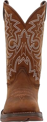 The Durango Saddlebrook combines authentic Western styling with practical work boot construction. Crafted from 100% imported leather, this square-toe design features traditional stitched detailing along the shaft and a distinctive scalloped collar for classic appeal. Dual pull loops ensure easy on-and-off, while the durable rubber sole provides reliable traction and support for long days. With an 11.5-inch shaft height, this boot delivers the coverage and stability serious ranch and work environments demand.
