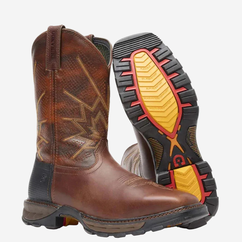 The Durango DDB0175 11" Tobacco Ventilated Western Boot is designed for all-day comfort in warm, demanding environments. Built with a breathable ventilated shaft, dual-density cushioning, and a stable rocker heel, this boot delivers airflow, support, and flexibility without sacrificing durability. It’s a reliable choice for long hours on your feet where comfort and ventilation matter most.