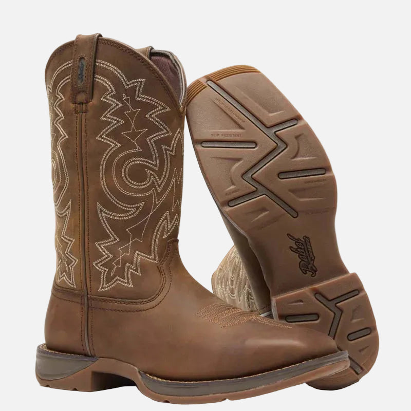 For stability and durability, this boot features a steel shank, rolled shank area, and double-row welt stitching. The 1.5" rocker heel supports natural movement and balance, and the slip-, oil-, and abrasion-resistant rubber outsole delivers dependable traction on tough surfaces. Built to perform and styled to stand out, the Durango Rebel™ is ready for serious work.