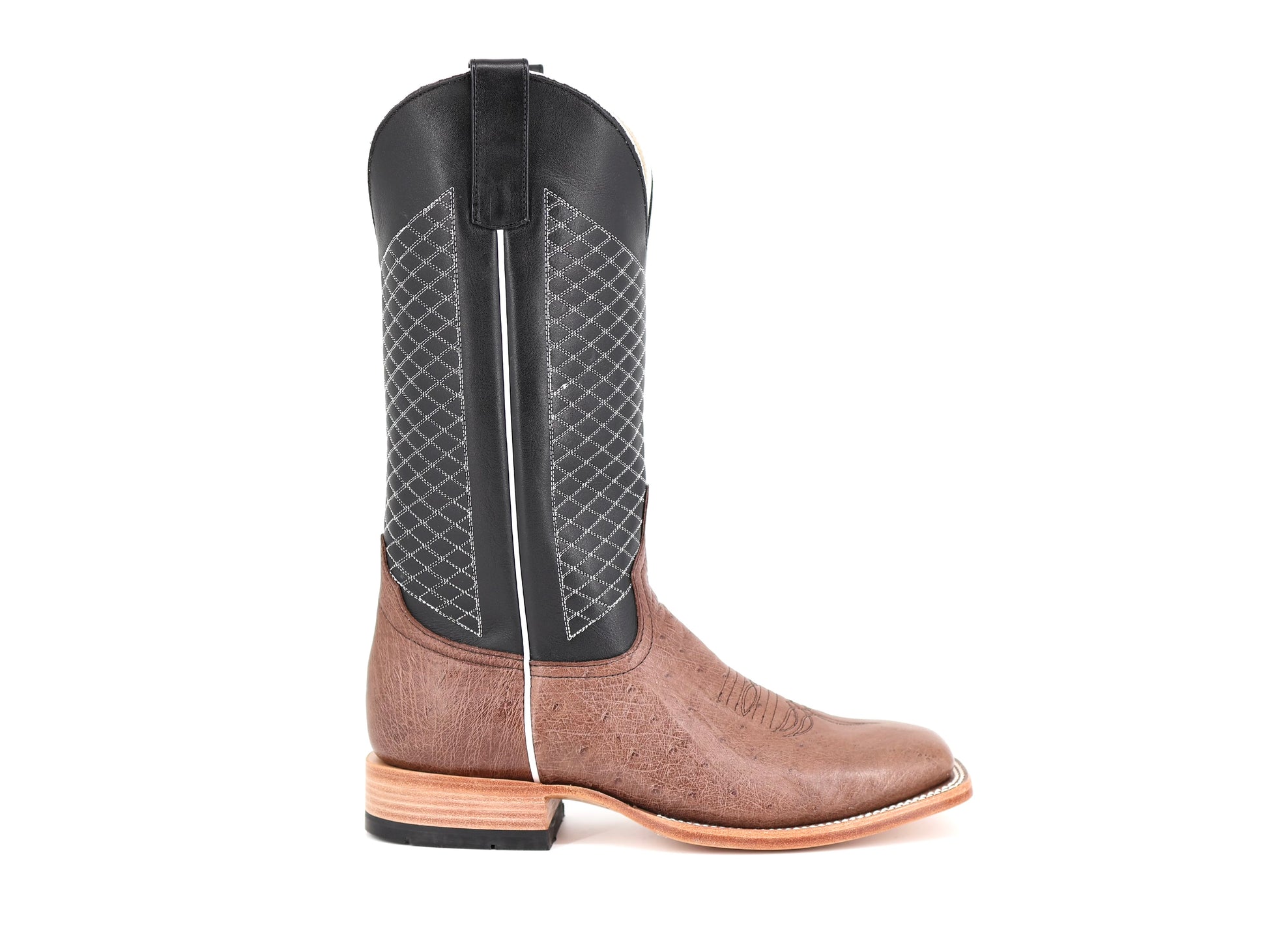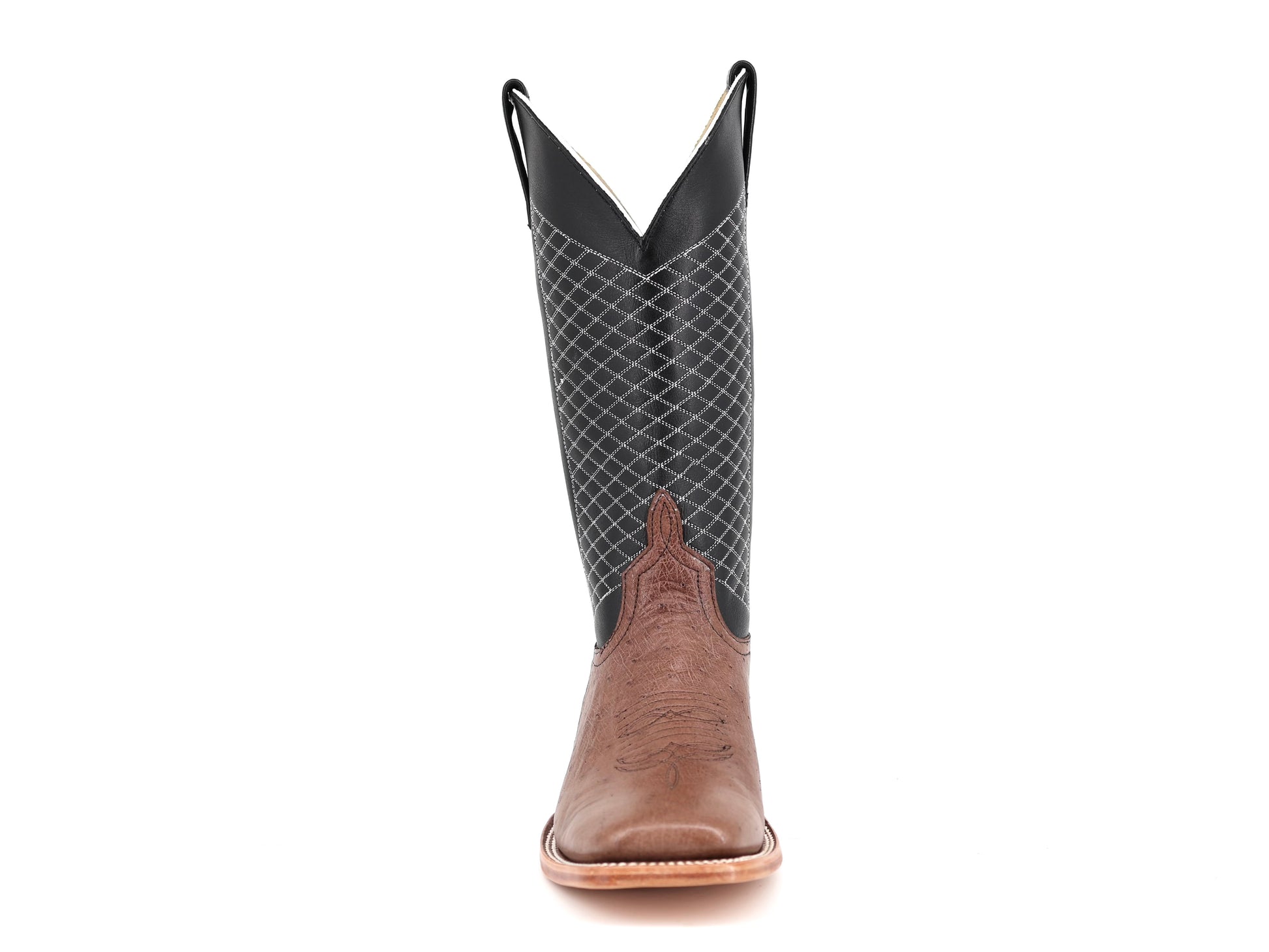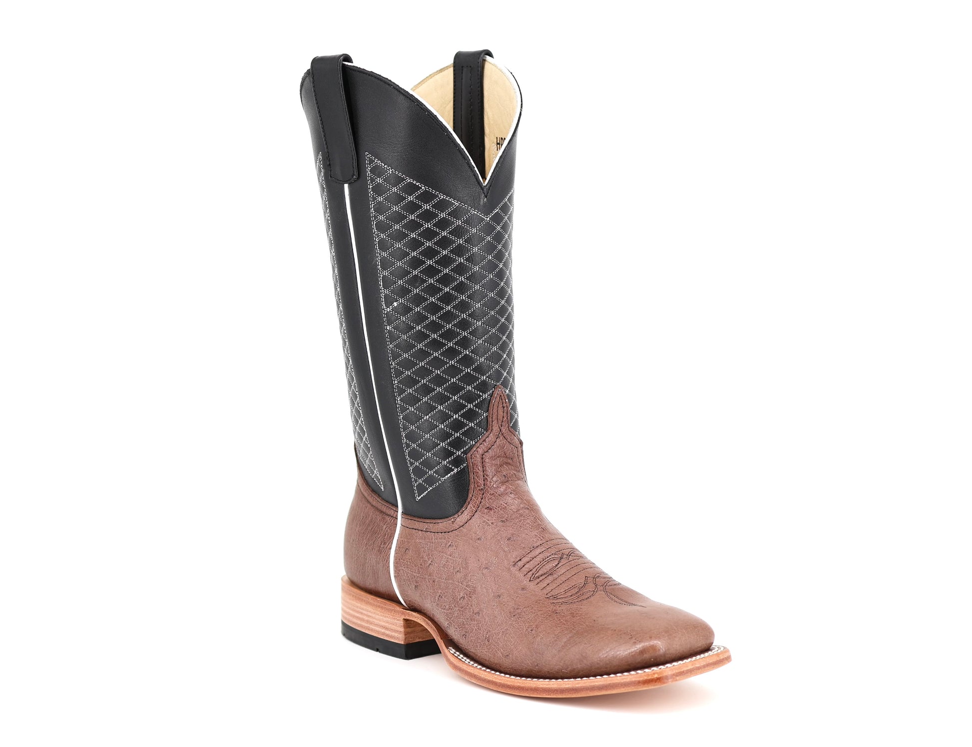 Step out in style with the Men’s Horse Power Western Boot, crafted for durability, comfort, and timeless Western appeal. Featuring a premium Kango Belly Ostrich vamp, these boots offer a unique texture and exceptional quality. The 13" black leather shaft is accented with a white check pattern, adding a bold and stylish contrast.