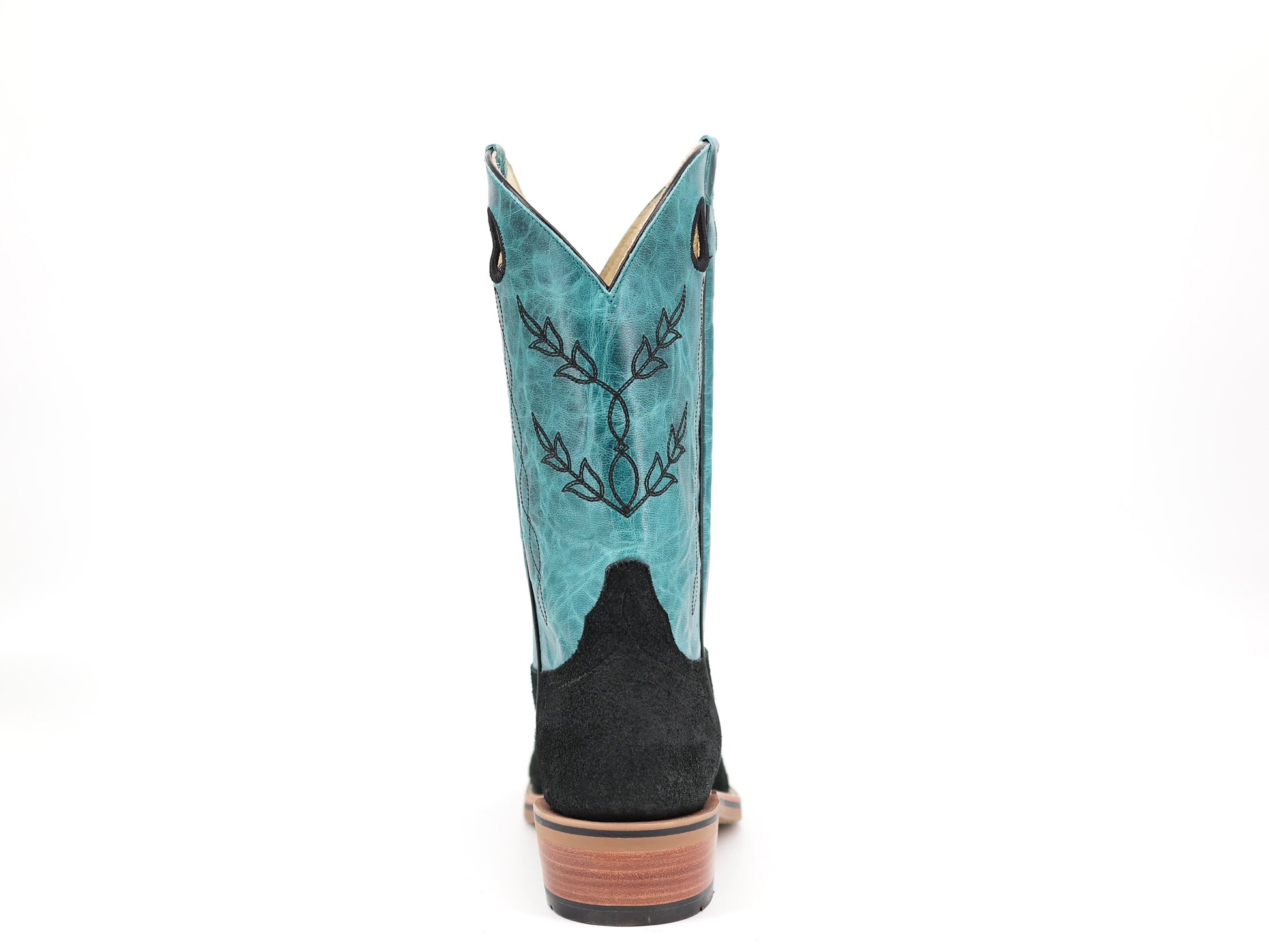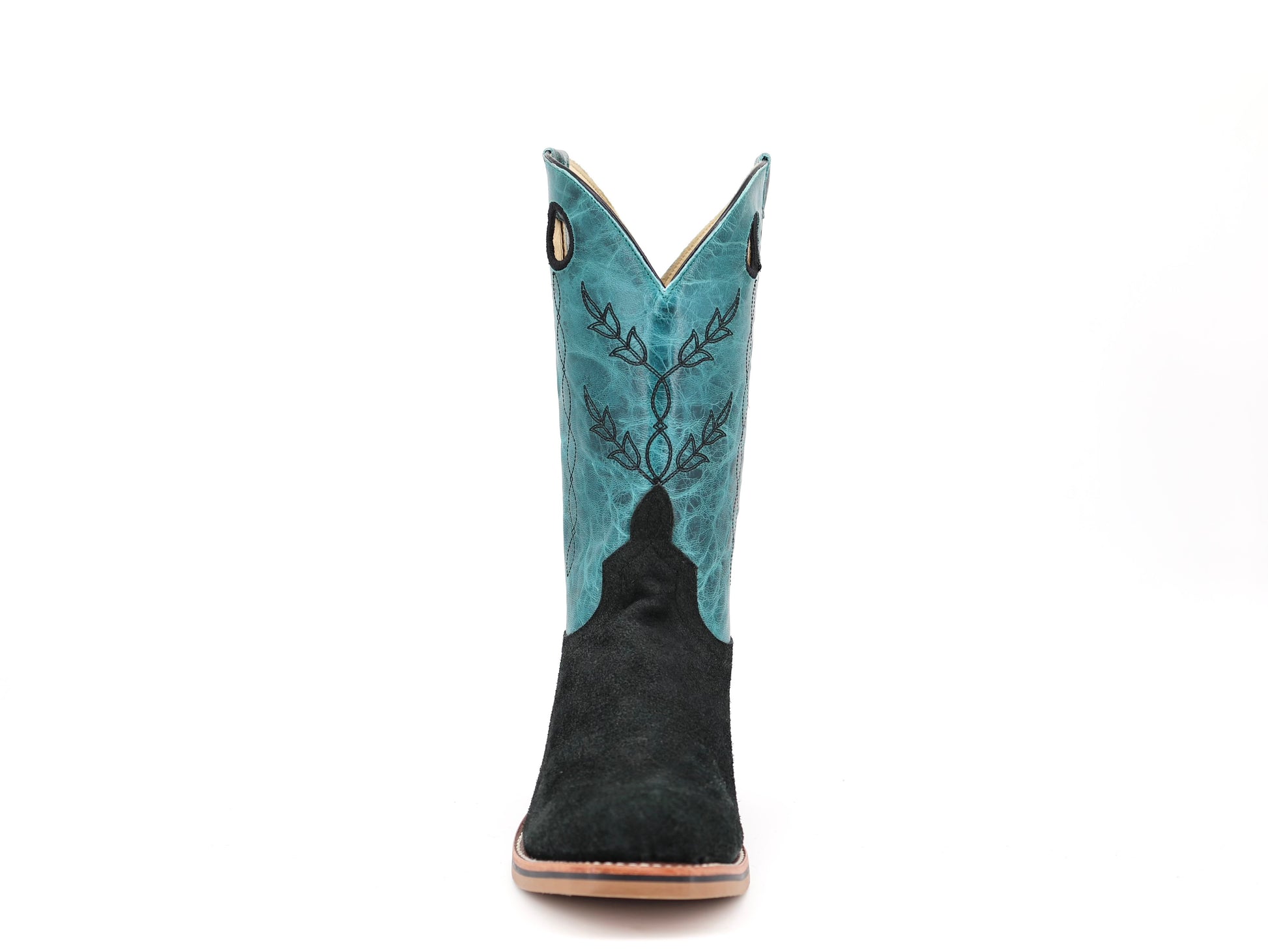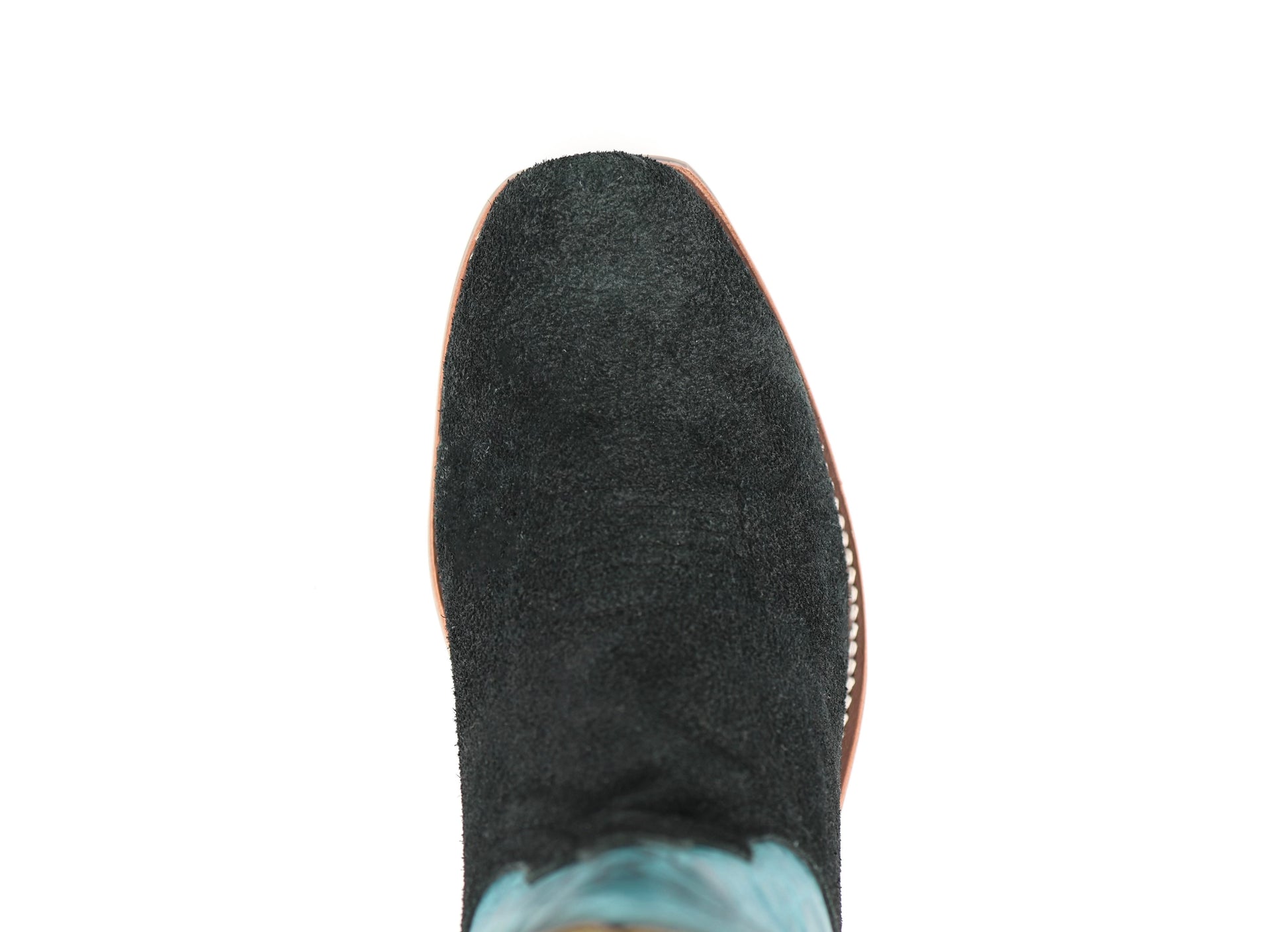 The combination of Black Suede for the Vamp and Blue Volcano for the Top, in a Black/Blue color scheme, gives these boots a striking appearance. With an impressive Top Height of 11", a TK Toe, and a Cowboy Heel, they're designed to make a statement. The Tan Hybrid Sole with a Black Neoprene Midsole not only adds style but also ensures durability and comfort. These boots are a great choice for those who want a bold and unique look with reliable performance.