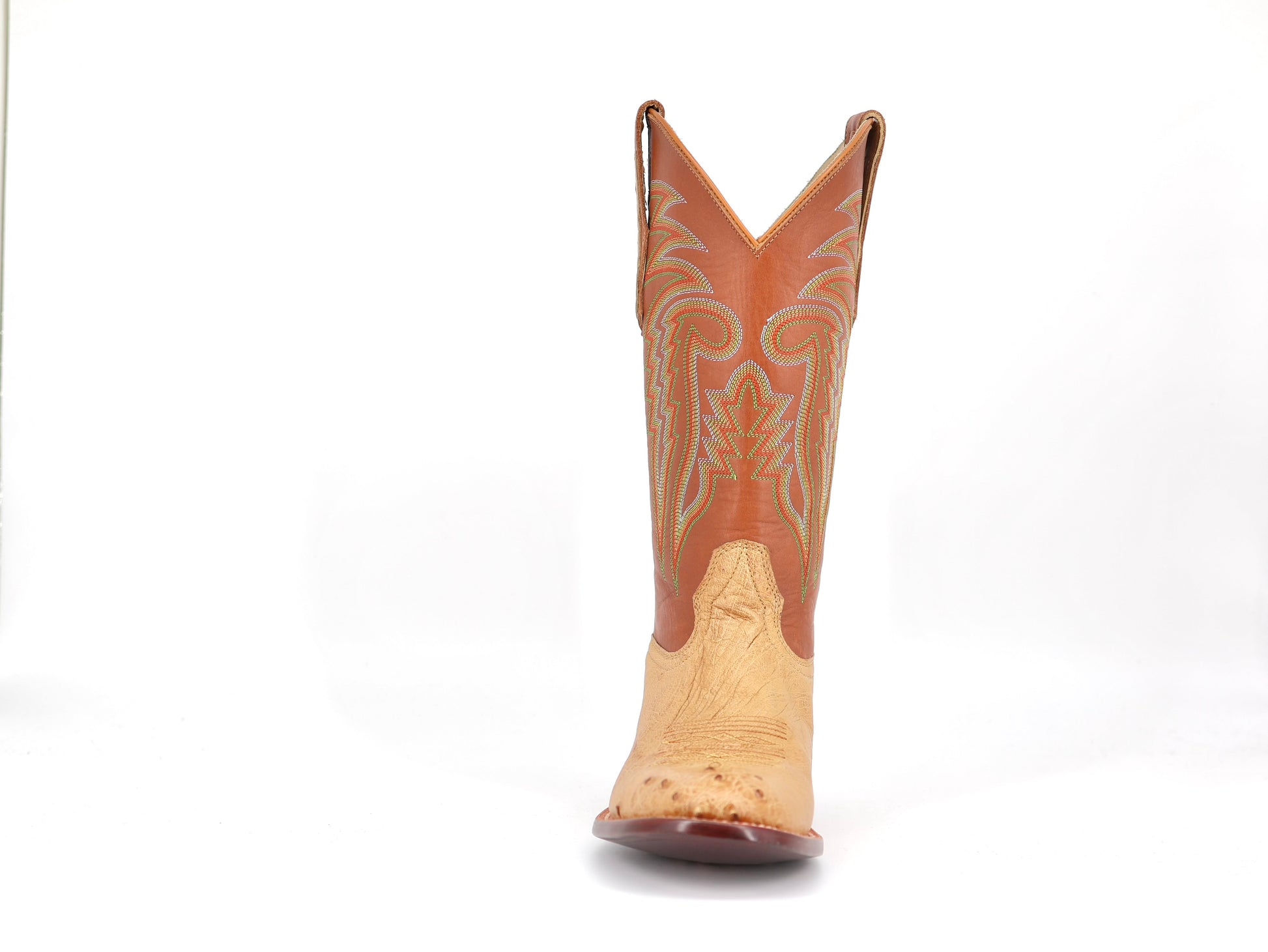 R. Watson Men’s Smooth Ostrich Western Boots – Antique Saddle Bruciato & Sunset Tan