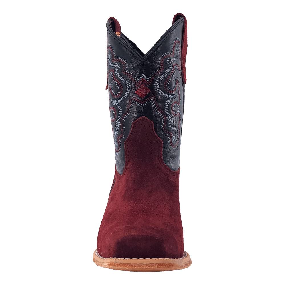 Step into cowboy adventures with R. Watson’s Kid’s Rhubarb Rough Out/Black boots! These playful western boots mix vibrant rhubarb-colored roughout with classic cowhide for a standout look. Featuring a comfy R. Watson comfort system, wide square toe, and a durable all-leather outsole with a stacked heel, they’re made to keep little feet happy on every trail. Perfect for walking, these boots bring western style and sturdy wear together effortlessly.