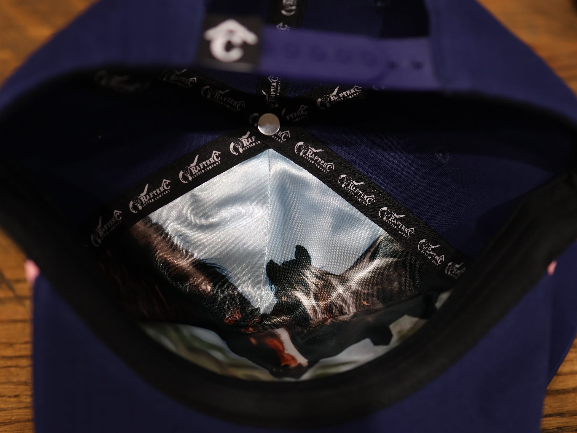 Show your love for authentic western heritage with the Rafter C Cattle Co Navy Cap featuring pink embroidery. Proudly crafted by a local Sayre, Oklahoma cattle company, this cap combines rugged style with a feminine touch. Inside, a unique print showcases some of their beautiful horses, making every wear a nod to genuine ranch life. Durable and stylish, this cap is perfect for everyday wear or showcasing your connection to the cowboy way.