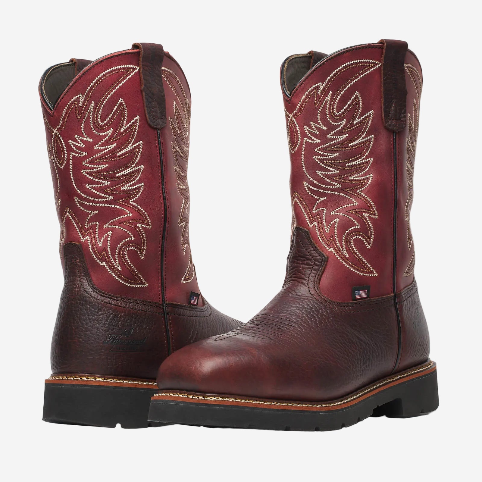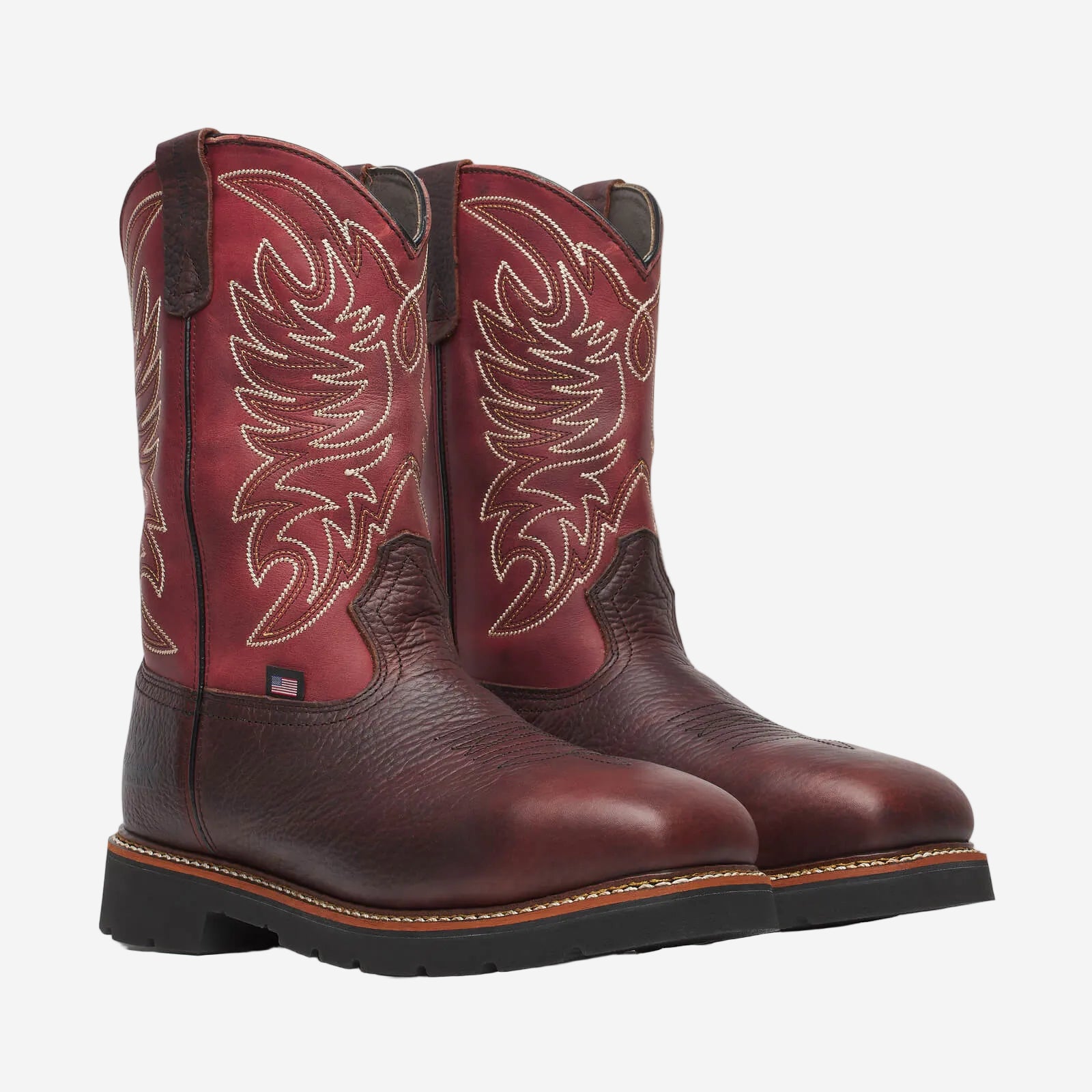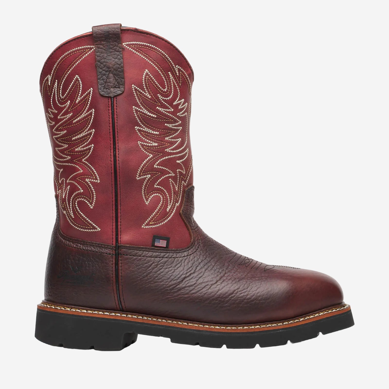 The Thorogood Western Work 11" Square Toe Wellington is built for long days in demanding environments where safety, durability, and comfort matter most. Crafted with American full-grain leather and a lightweight nano safety toe, this pull-on work boot delivers dependable protection without unnecessary weight. Waterproof construction keeps feet dry, while the shock-absorbing footbed and rugged outsole provide comfort and traction from start to finish.